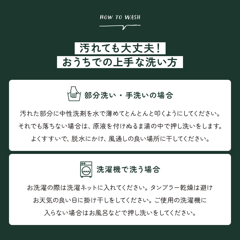 ※洗濯機で洗えます。洗濯ネットに入れる。洗濯機の容量をご確認ください。