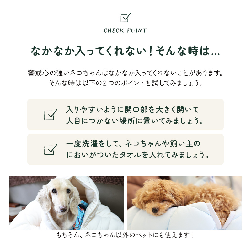 こわがりなネコちゃんや狭い場所が好きなネコちゃんにおすすめです。