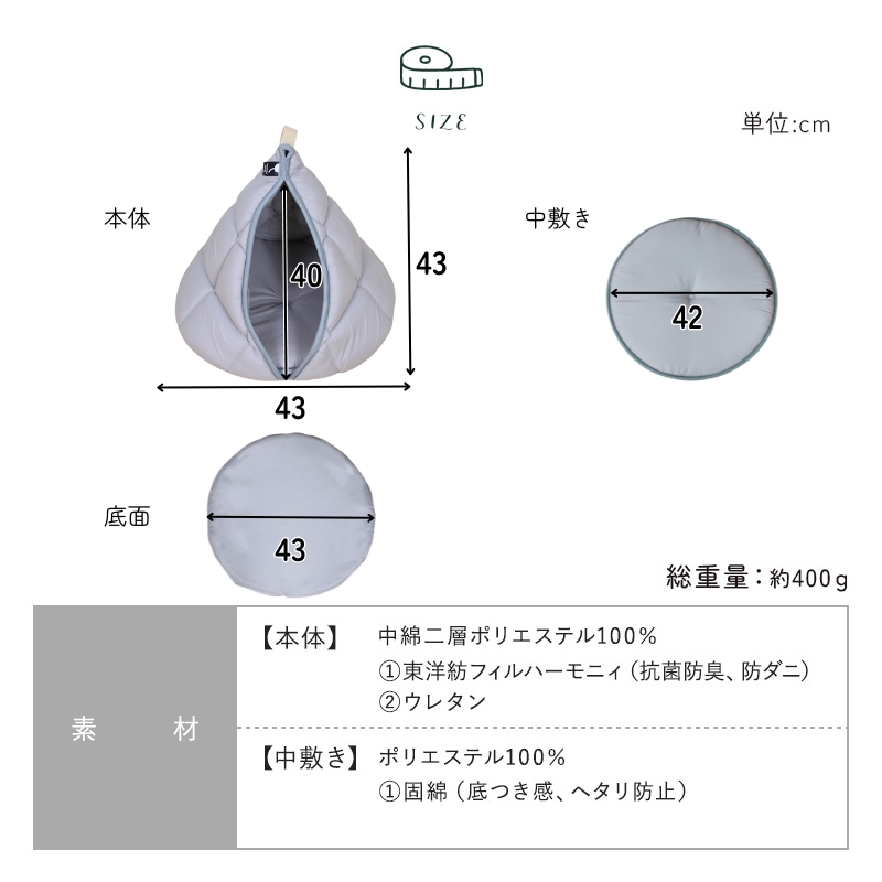 中綿:ポリエステル100%(東洋紡フィルハーモニィ®)