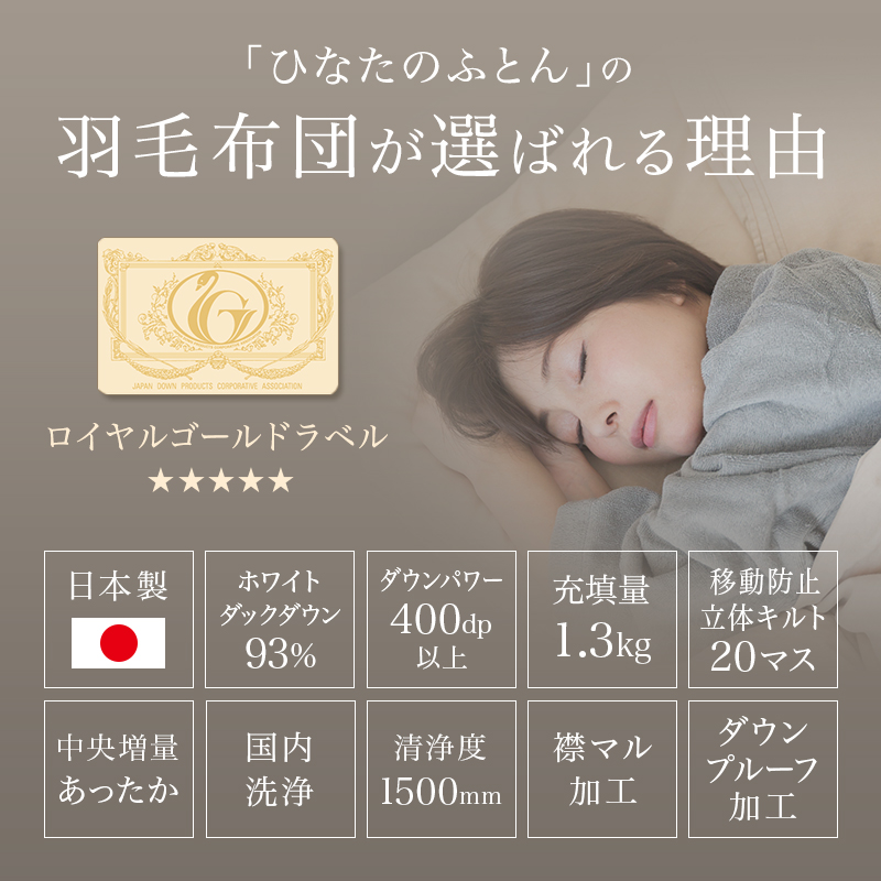 羽毛が片寄りにくいから、いつまでも暖かい