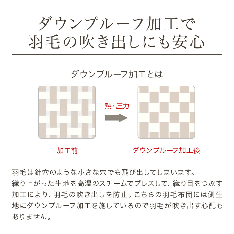 ・羽毛の抜け出しを防止するダウンプルーフ加工
