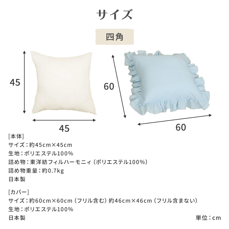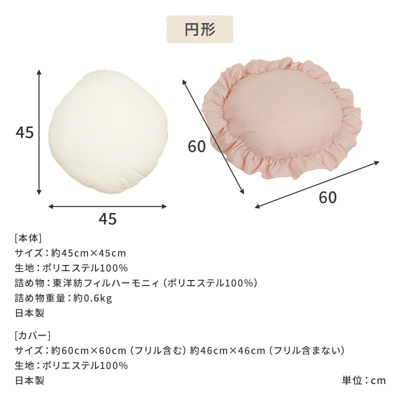 サイズ:(四角)45×45cm カバーあり60×60cm (円形)45×45cm カバーあり60×60cm
