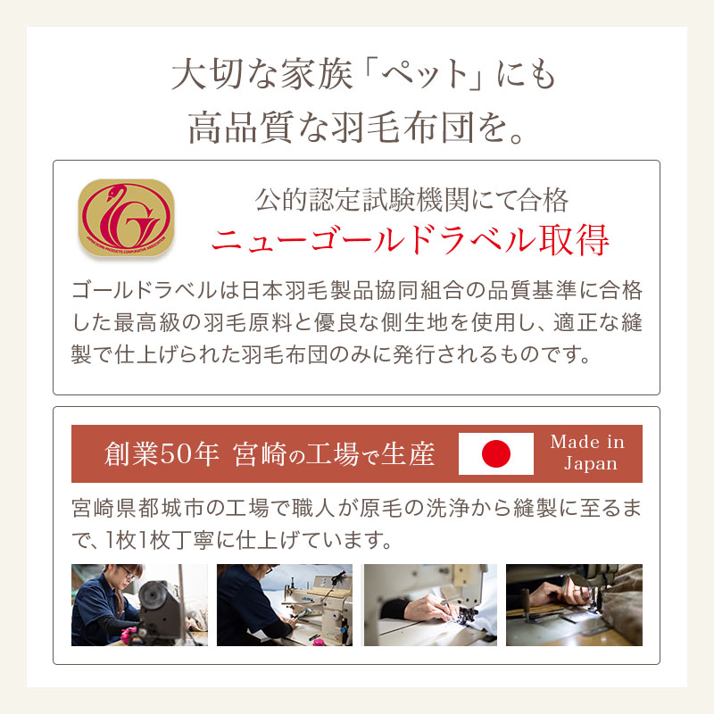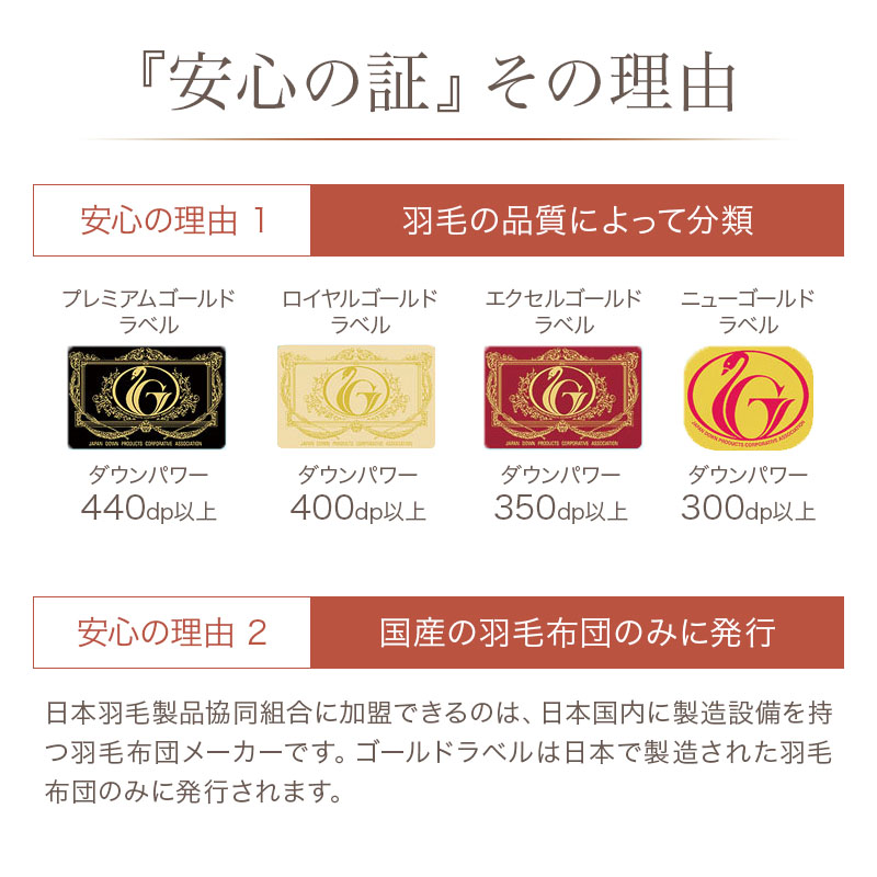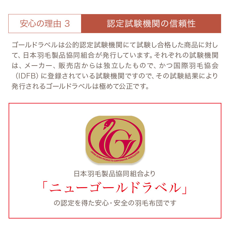 ・3つ星ニューゴールドラベル取得の高品質羽毛