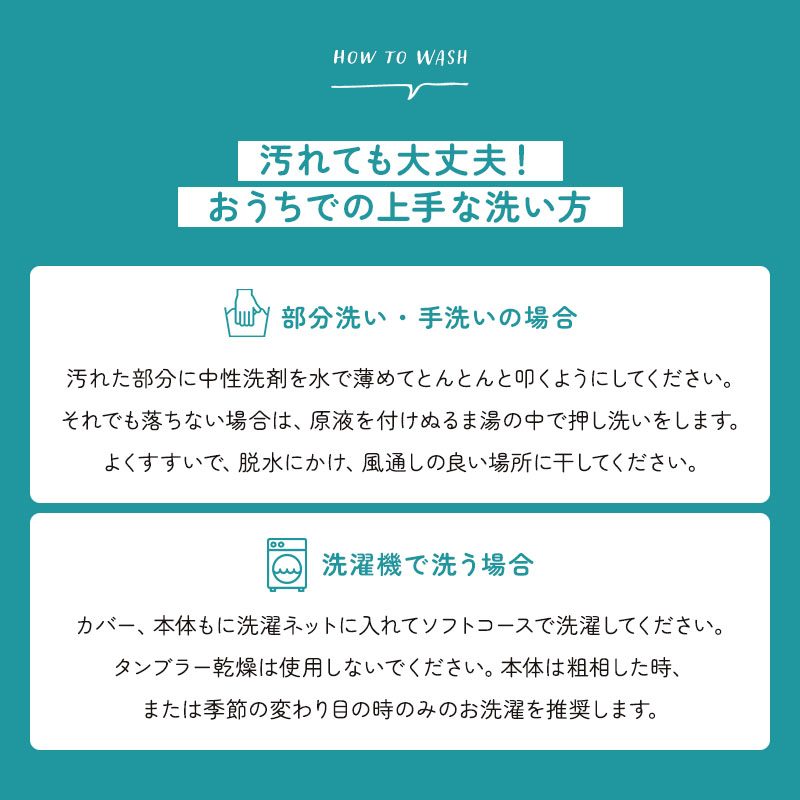・ご家庭の洗濯機で丸洗い可能