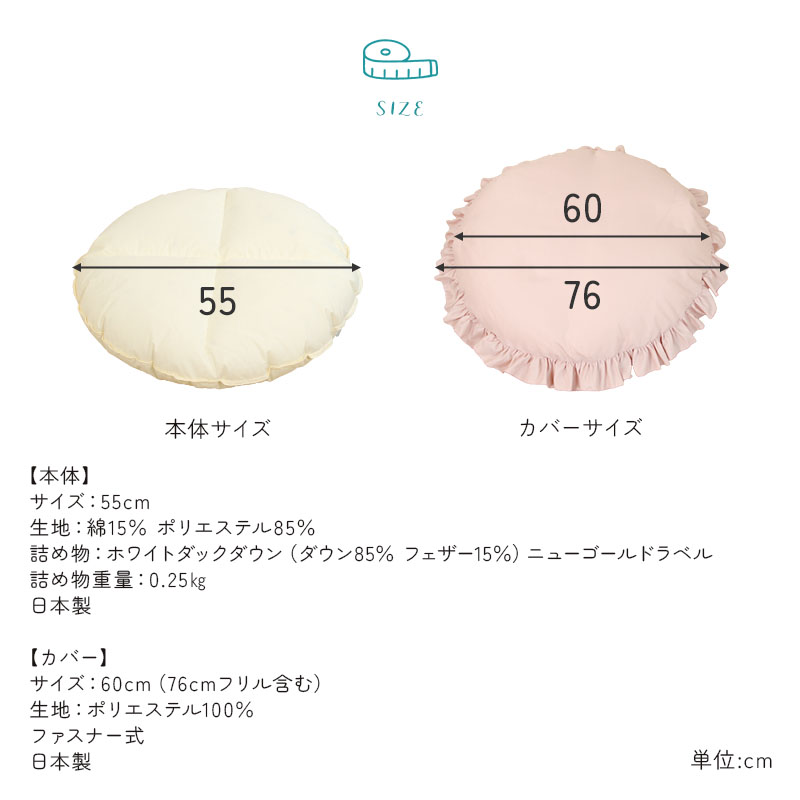 サイズ:(本体)55cm (カバー)60cm(76cmフリル含む)