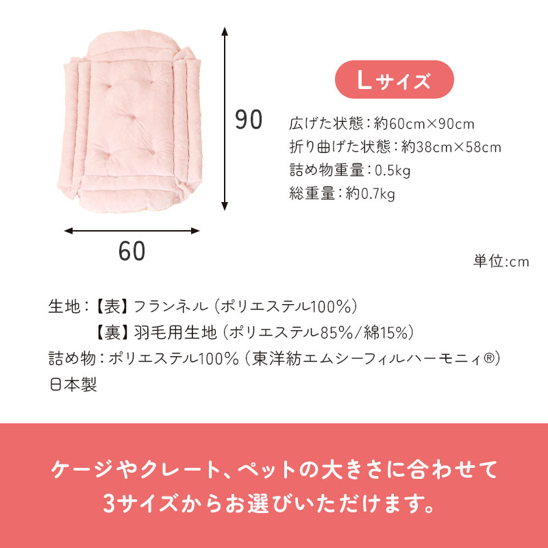 サイズ:(S)広げた状態 約47×73cm 折り曲げた状態 約26×42cm (M)広げた状態 約53×83cm 折り曲げた状態 約30×50cm (L)広げた状態 約60×90cm 折り曲げた状態 約38×58cm