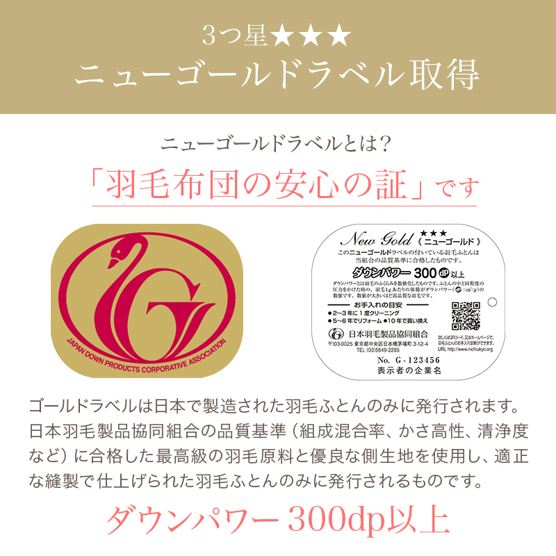 ・3つ星ニューゴールドラベル取得の羽毛布団