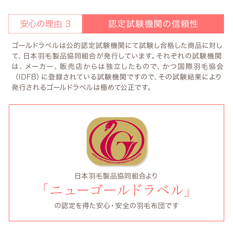 ニューゴールドラベル取得の高品質羽毛を