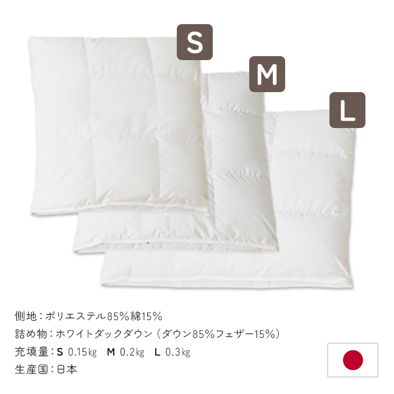 詰め物:ホワイトダックダウン(ダウン85% フェザー15%)