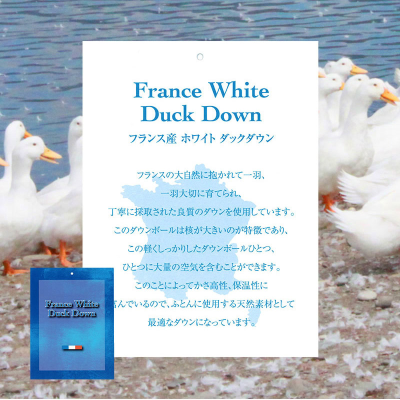 詰め物:フランス産ホワイトダックダウン(ダウン90%フェザー10%)