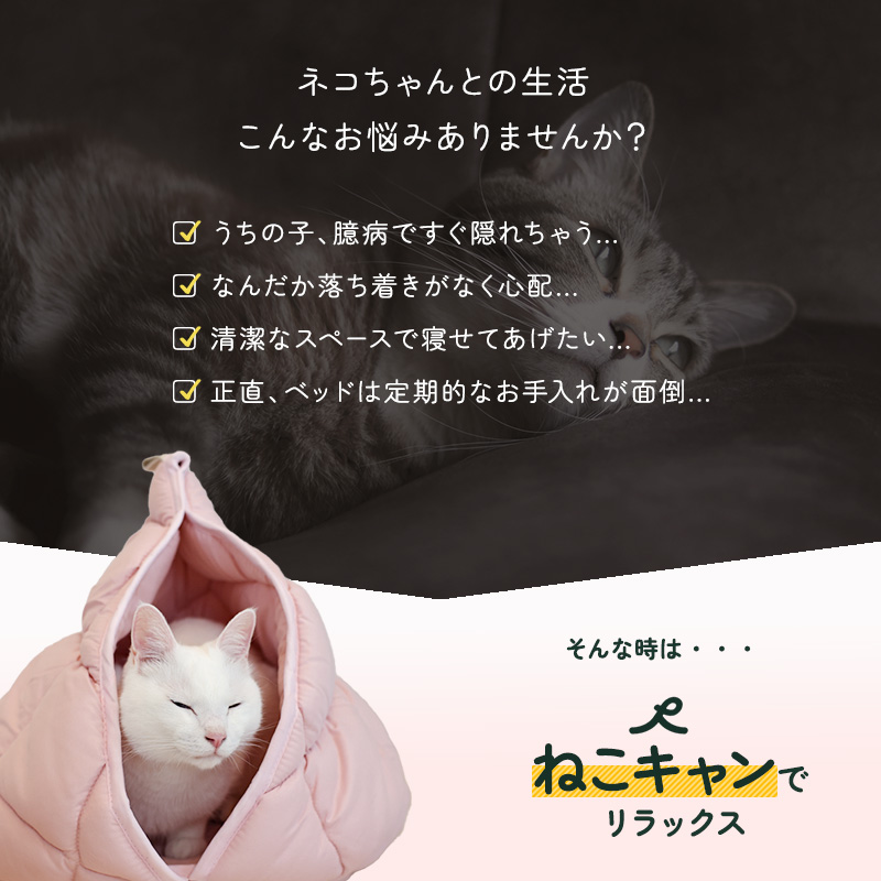 テントの形をしたハウス型おふとん『 ねこキャン 』