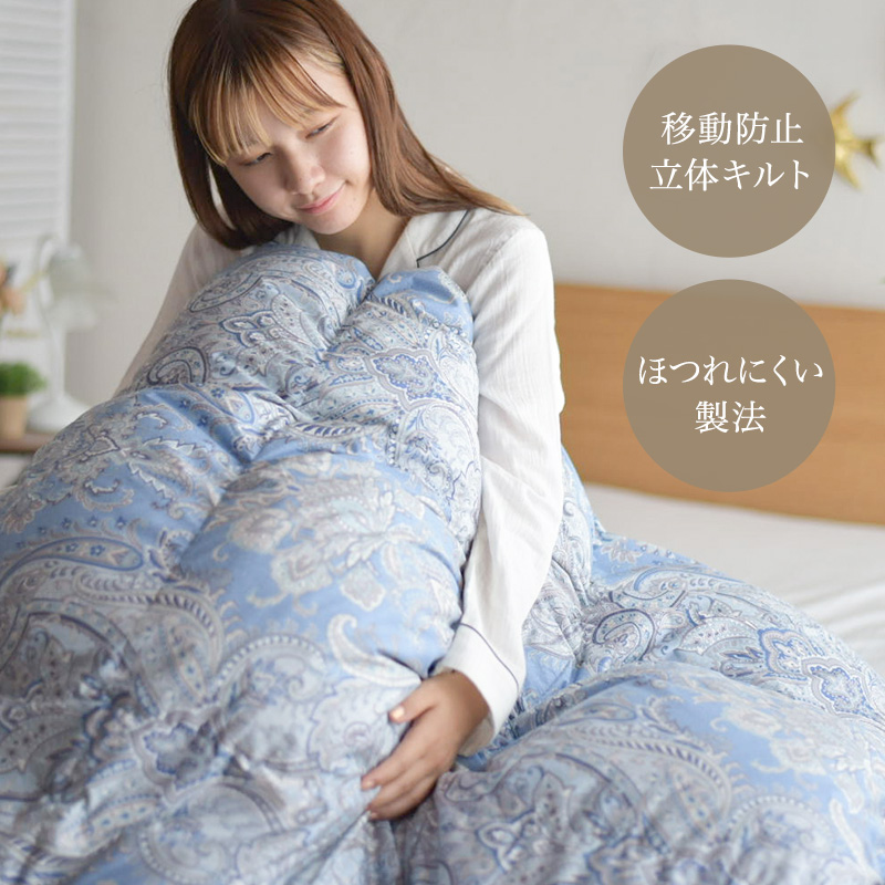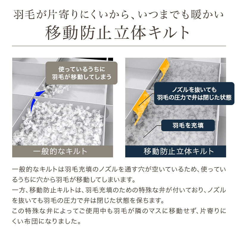 移動防止立体キルトの羽毛布団