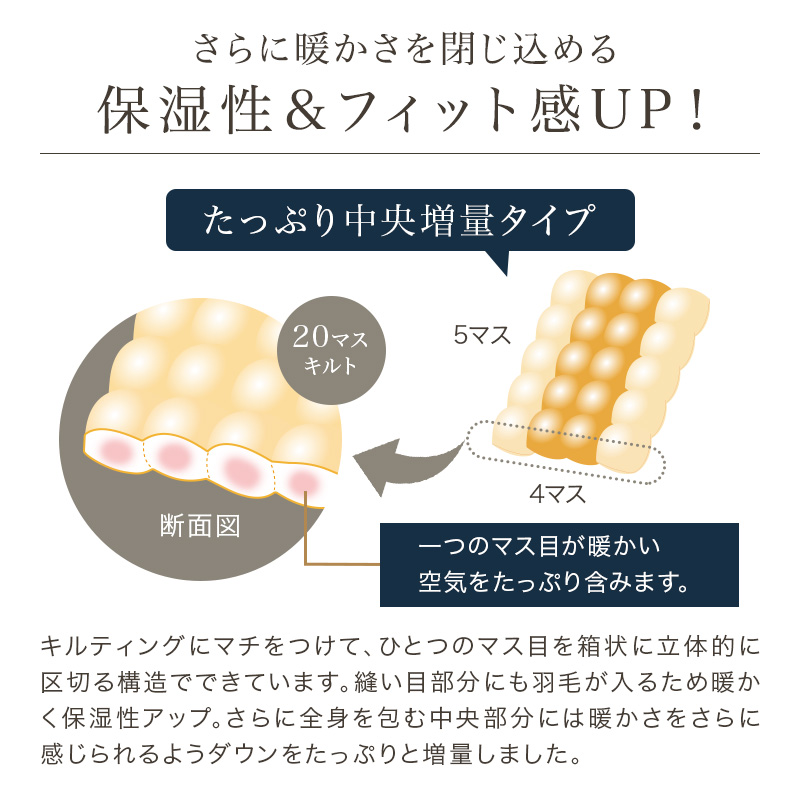 中央部分に羽毛をたっぷりと増量し