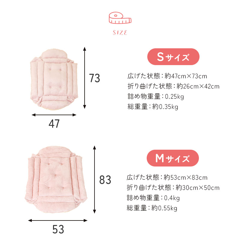 詰め物重量:(S)0.25kg (M)0.4kg (L)0.5kg