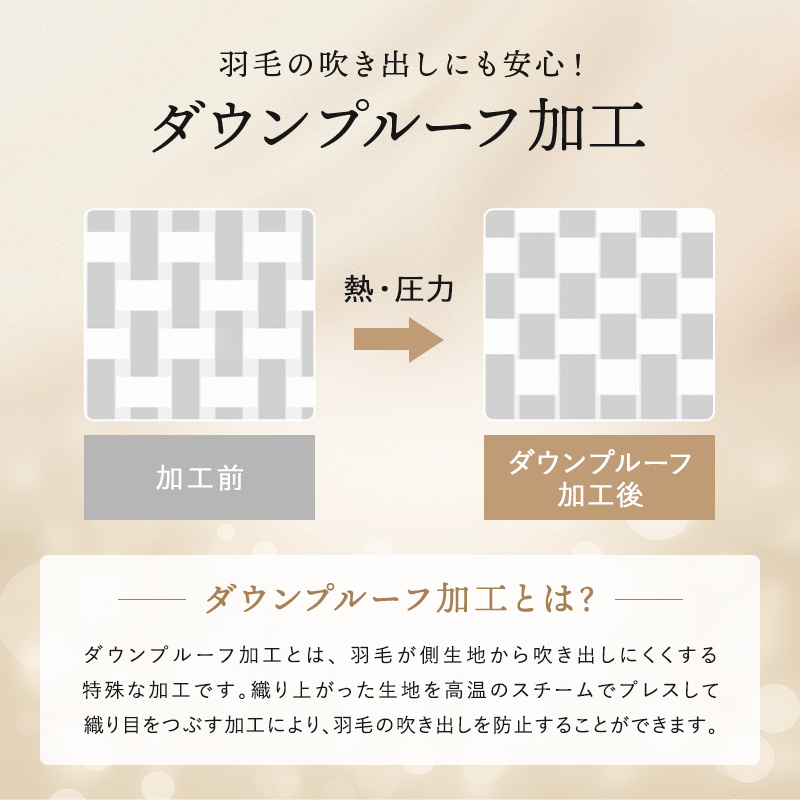 ・羽毛の抜け出しを防止するダウンプルーフ加工