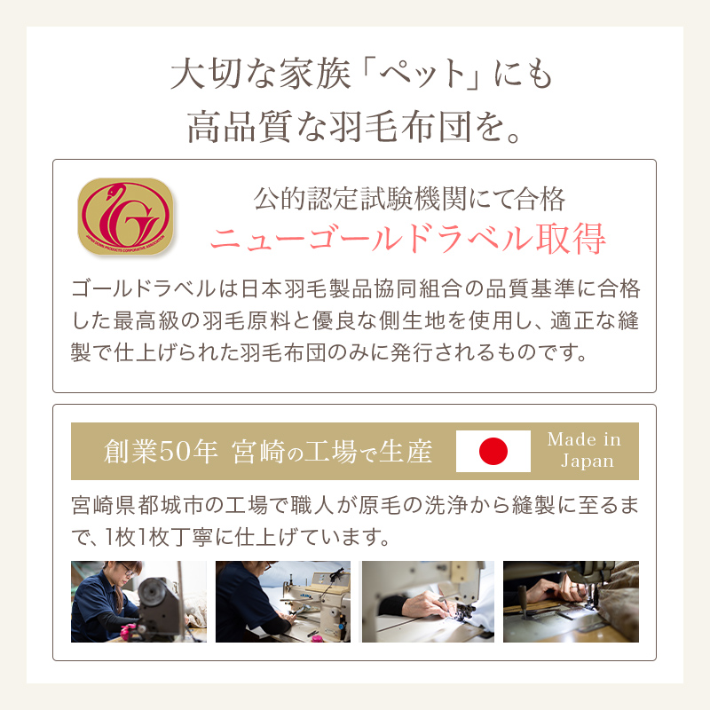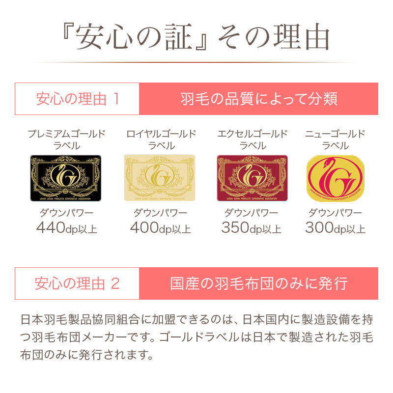 ニューゴールドラベル取得の高品質羽毛を