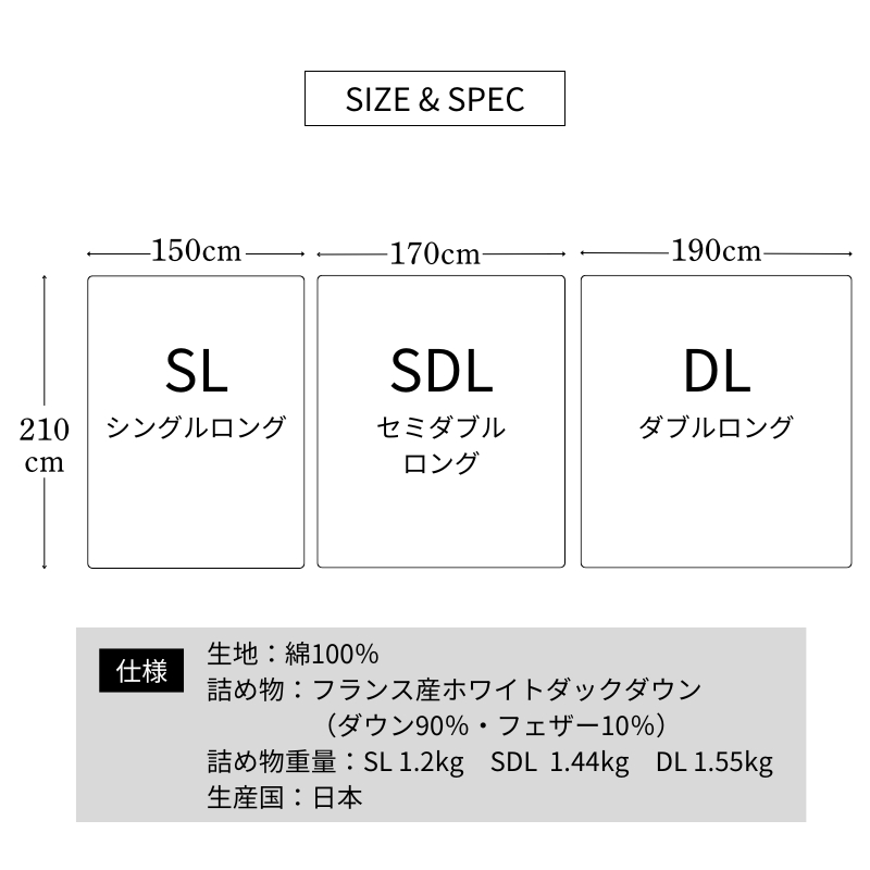 サイズ:(SL)150×210cm (SDL)170×210cm (DL)190×210cm